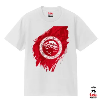Olympiacos F.C., Κλασικό T-Shirt, διπλής ραφής, χωρίς πλευρικές ραφές ΛΕΥΚΟ από 100% βαμβάκι. Vegan & OEKO-TEX πιστοποιημένο.