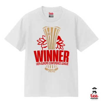 Europa Conference League WINNER, Κλασικό T-Shirt, διπλής ραφής, χωρίς πλευρικές ραφές ΛΕΥΚΟ από 100% βαμβάκι. Vegan & OEKO-TEX πιστοποιημένο.