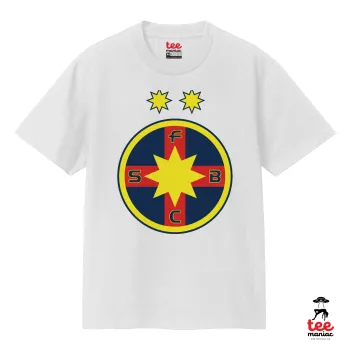 FC Steaua Bucuresti (FCSB), Κλασικό T-Shirt, διπλής ραφής, χωρίς πλευρικές ραφές ΛΕΥΚΟ από 100% βαμβάκι. Vegan & OEKO-TEX πιστοποιημένο.