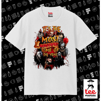 Halloween it's most wonderful time of the year, Κλασικό T-Shirt, διπλής ραφής, χωρίς πλευρικές ραφές ΛΕΥΚΟ από 100% βαμβάκι. Vegan & OEKO-TEX πιστοποιημένο.