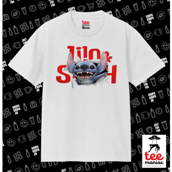 Stitch movie, Κλασικό T-Shirt, διπλής ραφής, χωρίς πλευρικές ραφές ΛΕΥΚΟ από 100% βαμβάκι. Vegan & OEKO-TEX πιστοποιημένο.