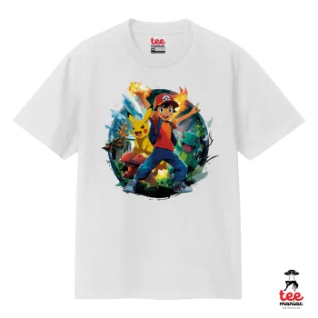 Ash Ketchum & Pikachu, Κλασικό T-Shirt, διπλής ραφής, χωρίς πλευρικές ραφές ΛΕΥΚΟ από 100% βαμβάκι. Vegan & OEKO-TEX πιστοποιημένο.