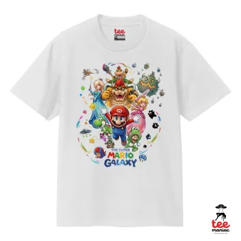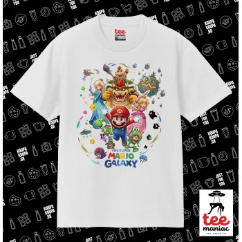 Mario Galaxy, Κλασικό T-Shirt, διπλής ραφής, χωρίς πλευρικές ραφές ΛΕΥΚΟ από 100% βαμβάκι. Vegan & OEKO-TEX πιστοποιημένο.