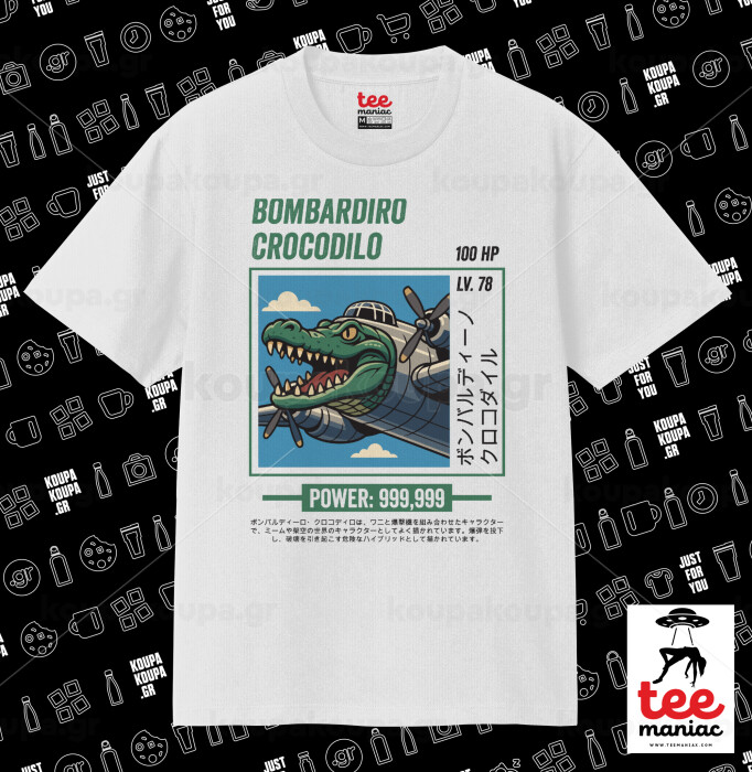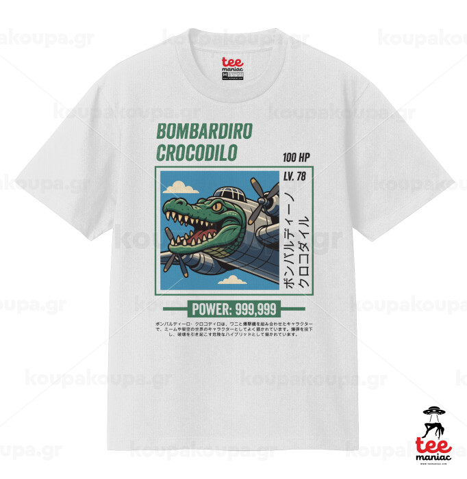 Bombardiro Crocodilo, Κλασικό T-Shirt, διπλής ραφής, χωρίς πλευρικές ραφές ΛΕΥΚΟ από 100% βαμβάκι. Vegan & OEKO-TEX πιστοποιημένο.