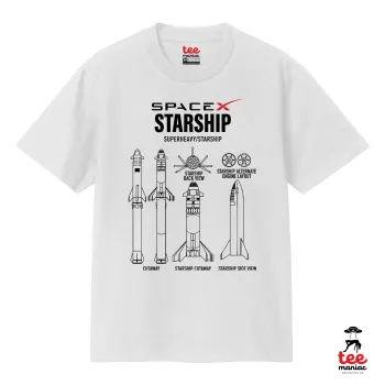 Space X, Κλασικό T-Shirt, διπλής ραφής, χωρίς πλευρικές ραφές ΛΕΥΚΟ από 100% βαμβάκι. Vegan & OEKO-TEX πιστοποιημένο.