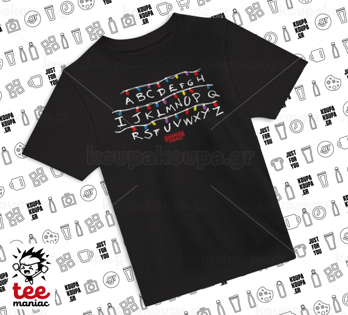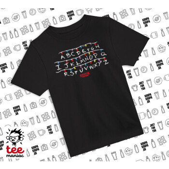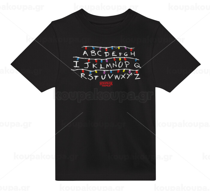 Stranger Things ABC, Άνετο παιδικό T-Shirt ΜΑΥΡΟ από 100% βαμβάκι, για κάθε μέρα. Vegan & OEKO-TEX πιστοποιημένο.