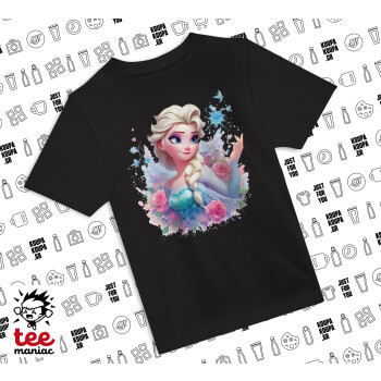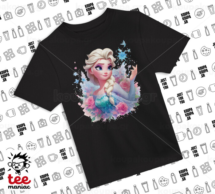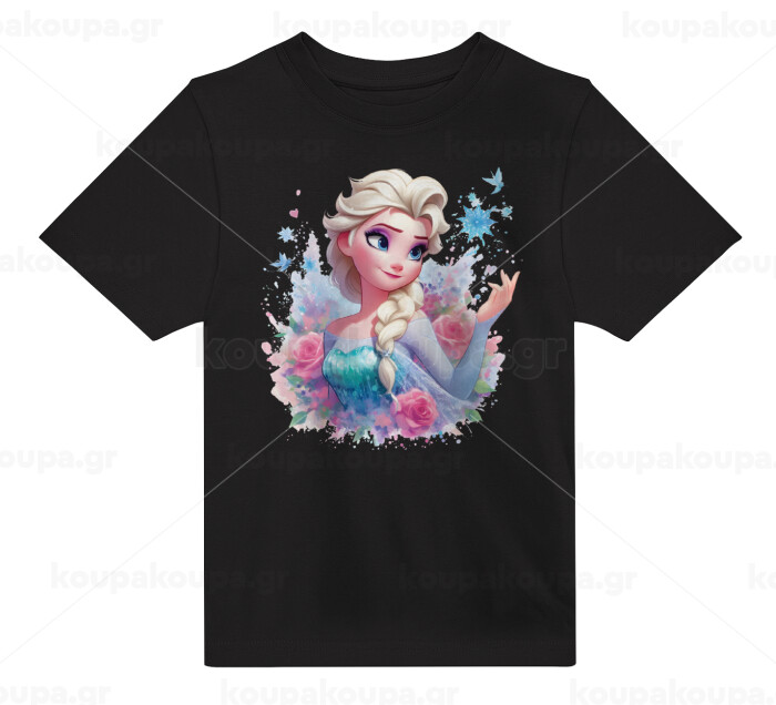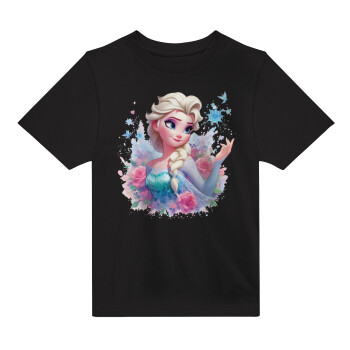 Elsa Princess, Άνετο παιδικό T-Shirt ΜΑΥΡΟ από 100% βαμβάκι, για κάθε μέρα. Vegan & OEKO-TEX πιστοποιημένο.