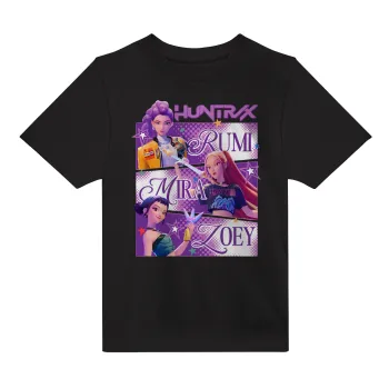 Huntrix Rumi Mira Zoey, Άνετο παιδικό T-Shirt ΜΑΥΡΟ από 100% βαμβάκι, για κάθε μέρα. Vegan & OEKO-TEX πιστοποιημένο.