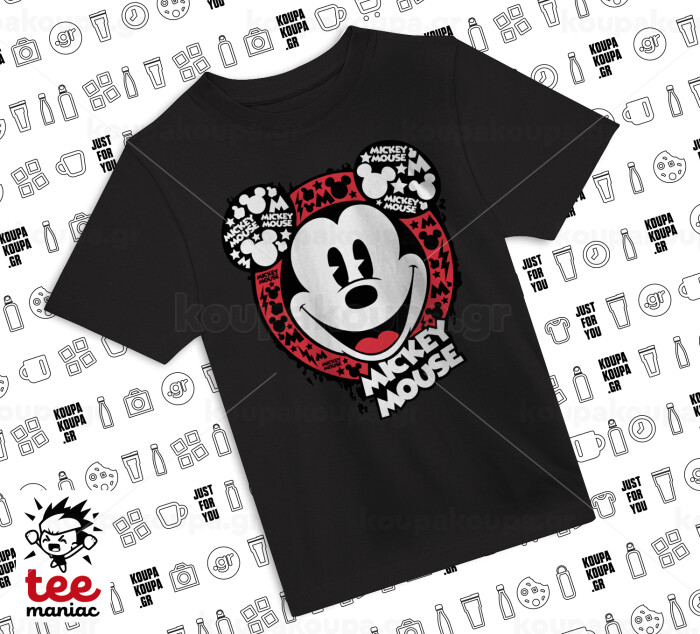 Mickey Mouse, Άνετο παιδικό T-Shirt ΜΑΥΡΟ από 100% βαμβάκι, για κάθε μέρα. Vegan & OEKO-TEX πιστοποιημένο.