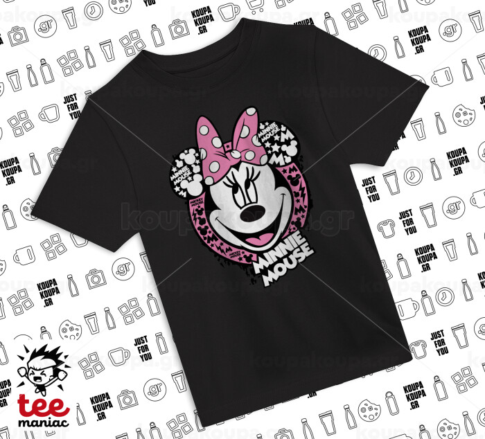 Minnie mouse, Άνετο παιδικό T-Shirt ΜΑΥΡΟ από 100% βαμβάκι, για κάθε μέρα. Vegan & OEKO-TEX πιστοποιημένο.