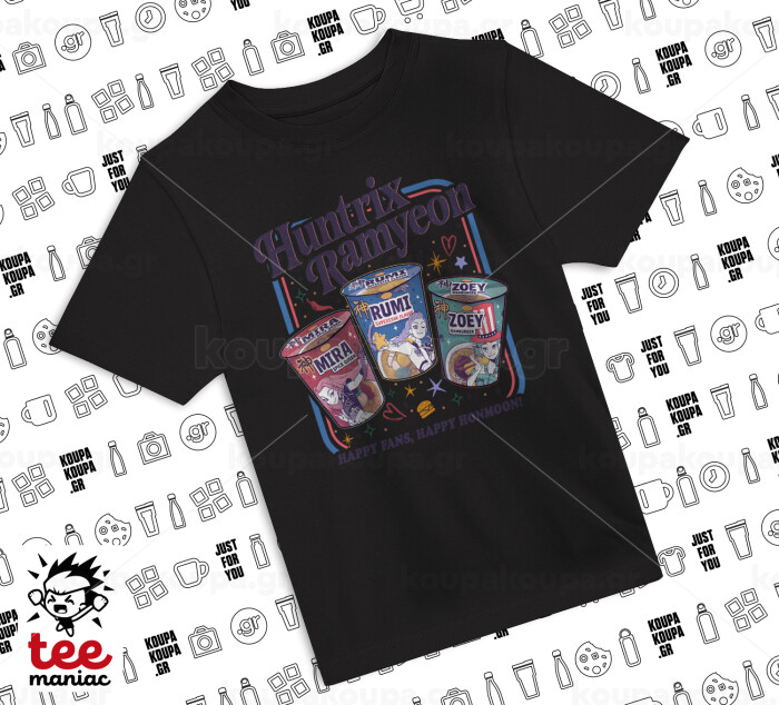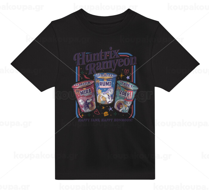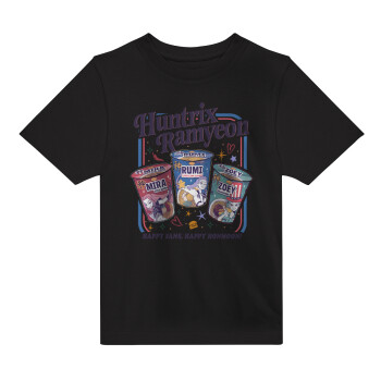 Ramyeon Huntrix, Άνετο παιδικό T-Shirt ΜΑΥΡΟ από 100% βαμβάκι, για κάθε μέρα. Vegan & OEKO-TEX πιστοποιημένο.