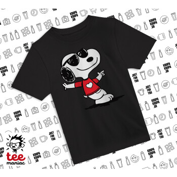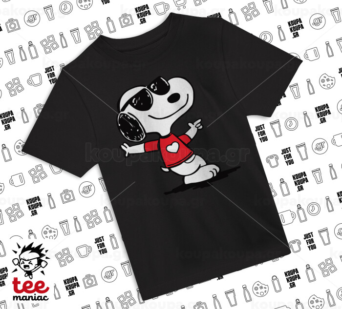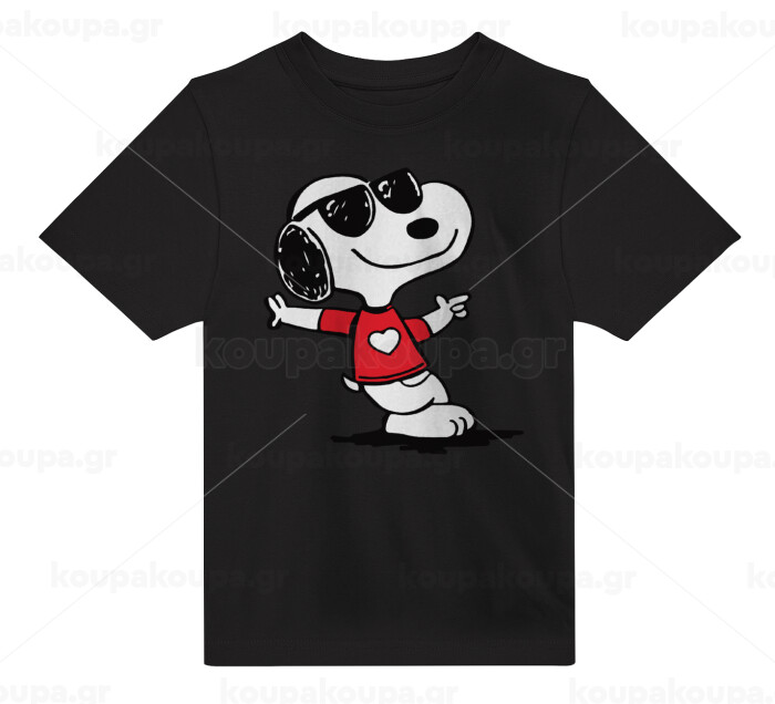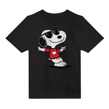 Snoopy καρδούλα, Άνετο παιδικό T-Shirt ΜΑΥΡΟ από 100% βαμβάκι, για κάθε μέρα. Vegan & OEKO-TEX πιστοποιημένο.