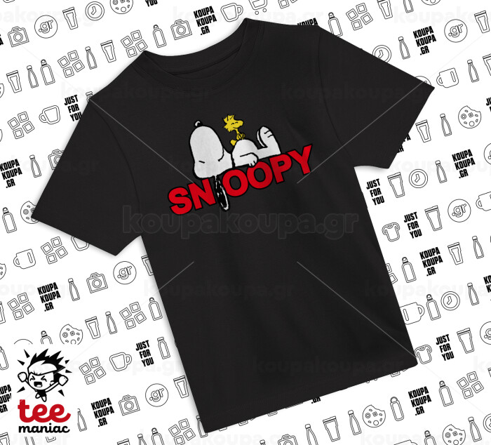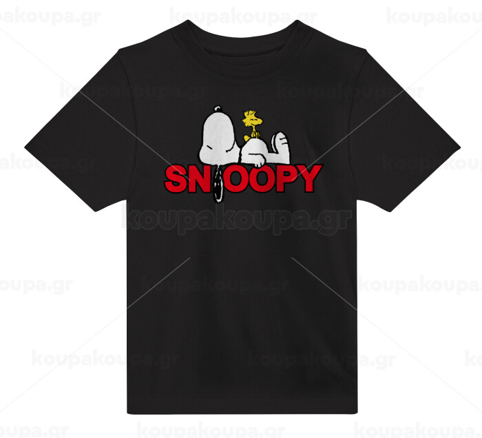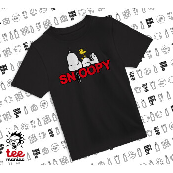 Snoopy sleep, Άνετο παιδικό T-Shirt ΜΑΥΡΟ από 100% βαμβάκι, για κάθε μέρα. Vegan & OEKO-TEX πιστοποιημένο.