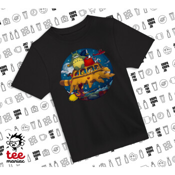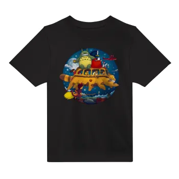 Totoro Catbus, Άνετο παιδικό T-Shirt ΜΑΥΡΟ από 100% βαμβάκι, για κάθε μέρα. Vegan & OEKO-TEX πιστοποιημένο.