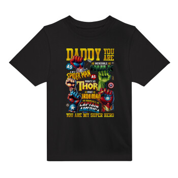 Daddy You Are my Hero, Άνετο παιδικό T-Shirt ΜΑΥΡΟ από 100% βαμβάκι, για κάθε μέρα. Vegan & OEKO-TEX πιστοποιημένο.