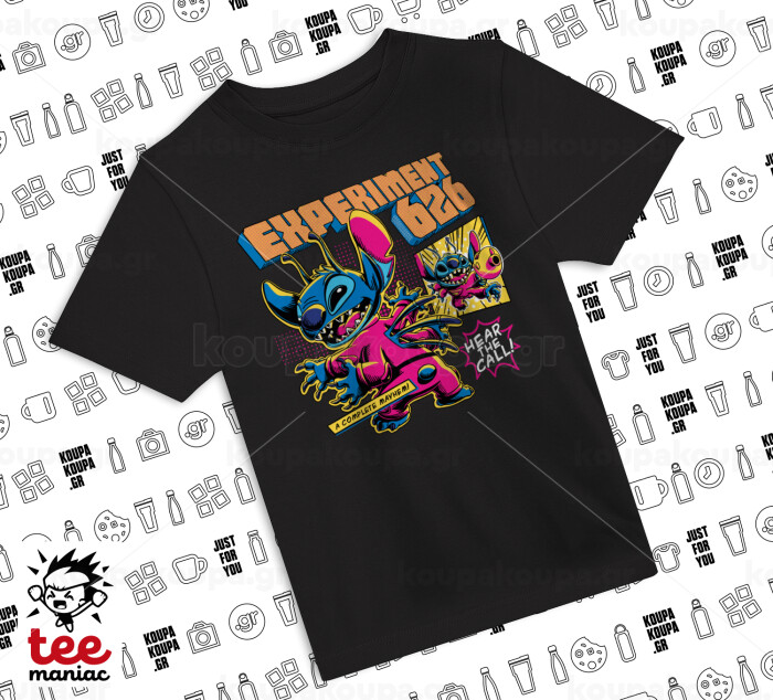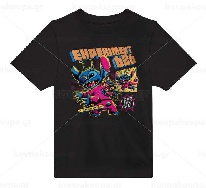 Stitch Experiment 626, Άνετο παιδικό T-Shirt ΜΑΥΡΟ από 100% βαμβάκι, για κάθε μέρα. Vegan & OEKO-TEX πιστοποιημένο.