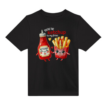 Ketchup To My Fries, Άνετο παιδικό T-Shirt ΜΑΥΡΟ από 100% βαμβάκι, για κάθε μέρα. Vegan & OEKO-TEX πιστοποιημένο.