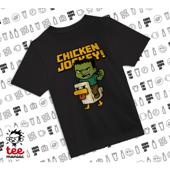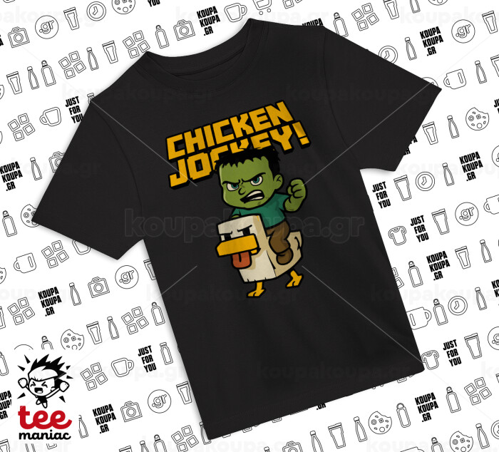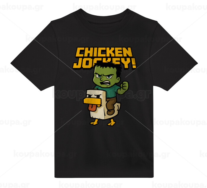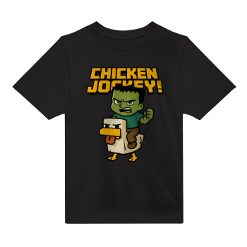 Chicken Jockey, Άνετο παιδικό T-Shirt ΜΑΥΡΟ από 100% βαμβάκι, για κάθε μέρα. Vegan & OEKO-TEX πιστοποιημένο.