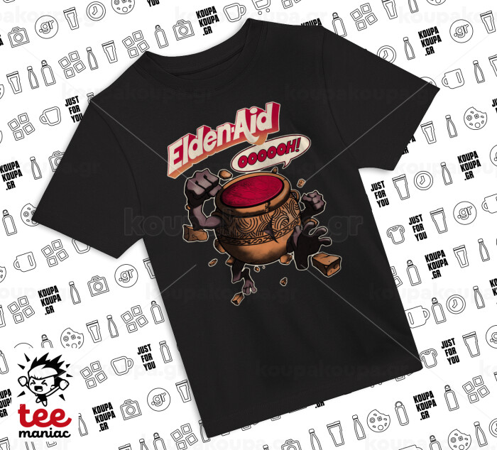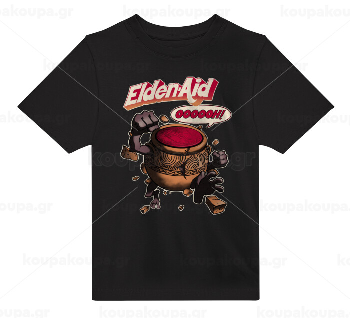 Elden-Aid, Elden Ring inspired , Άνετο παιδικό T-Shirt ΜΑΥΡΟ από 100% βαμβάκι, για κάθε μέρα. Vegan & OEKO-TEX πιστοποιημένο.