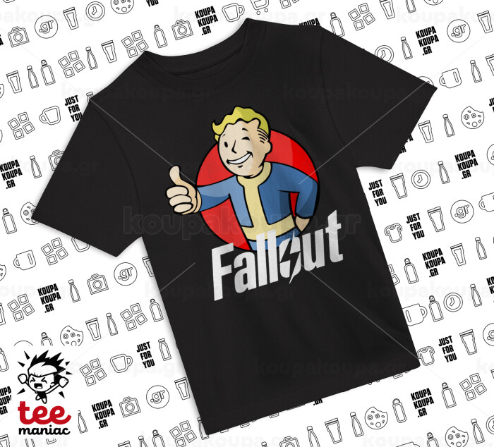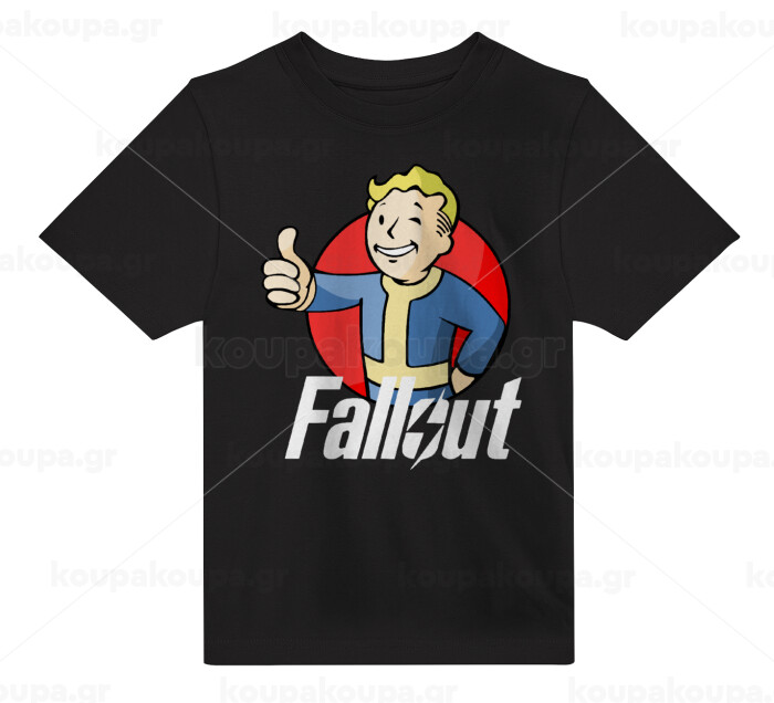 Fallout Vault Boy, Άνετο παιδικό T-Shirt ΜΑΥΡΟ από 100% βαμβάκι, για κάθε μέρα. Vegan & OEKO-TEX πιστοποιημένο.