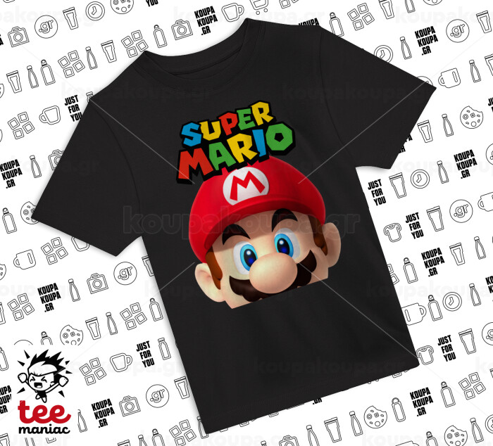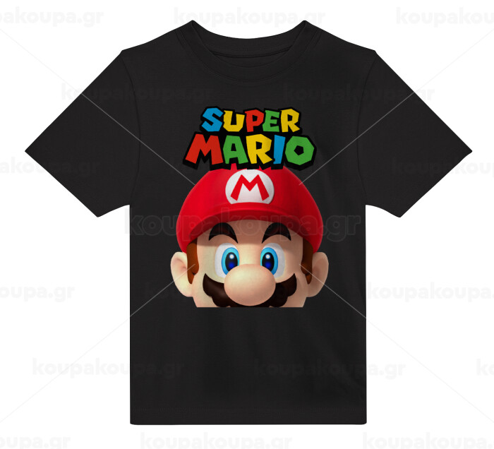 Super mario, Άνετο παιδικό T-Shirt ΜΑΥΡΟ από 100% βαμβάκι, για κάθε μέρα. Vegan & OEKO-TEX πιστοποιημένο.