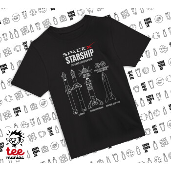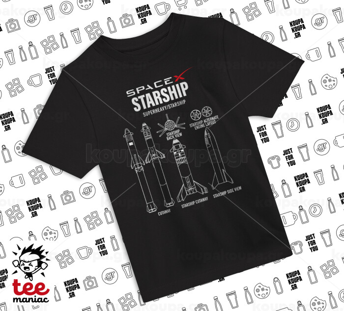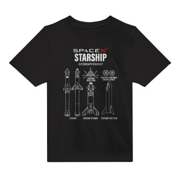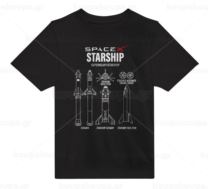 Space X, Άνετο παιδικό T-Shirt ΜΑΥΡΟ από 100% βαμβάκι, για κάθε μέρα. Vegan & OEKO-TEX πιστοποιημένο.