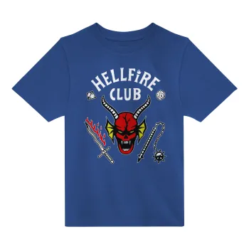 Hellfire CLub, Stranger Things, Παιδικό T-Shirt ΜΠΛΕ από 100% βαμβάκι, για κάθε μέρα. Vegan & OEKO-TEX πιστοποιημένο.