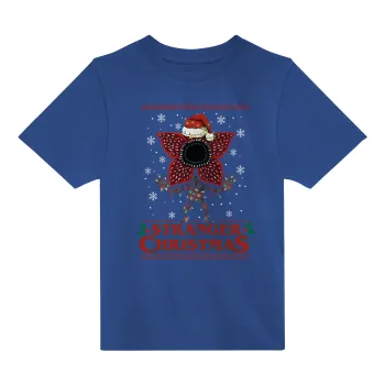 Stranger Things Christmas, Παιδικό T-Shirt ΜΠΛΕ από 100% βαμβάκι, για κάθε μέρα. Vegan & OEKO-TEX πιστοποιημένο.