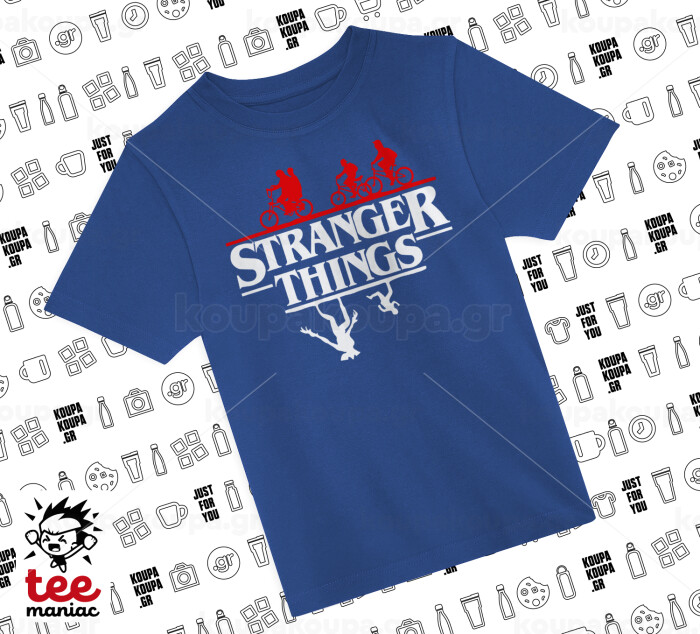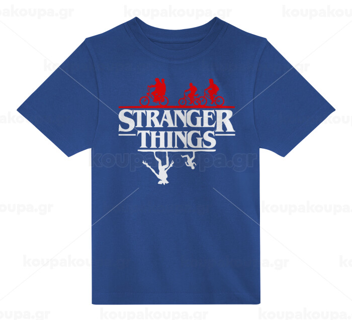 Stranger Things upside down, Παιδικό T-Shirt ΜΠΛΕ από 100% βαμβάκι, για κάθε μέρα. Vegan & OEKO-TEX πιστοποιημένο.