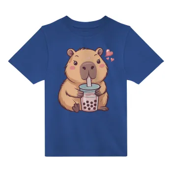 Capybara Bubble Tea, Παιδικό T-Shirt ΜΠΛΕ από 100% βαμβάκι, για κάθε μέρα. Vegan & OEKO-TEX πιστοποιημένο.