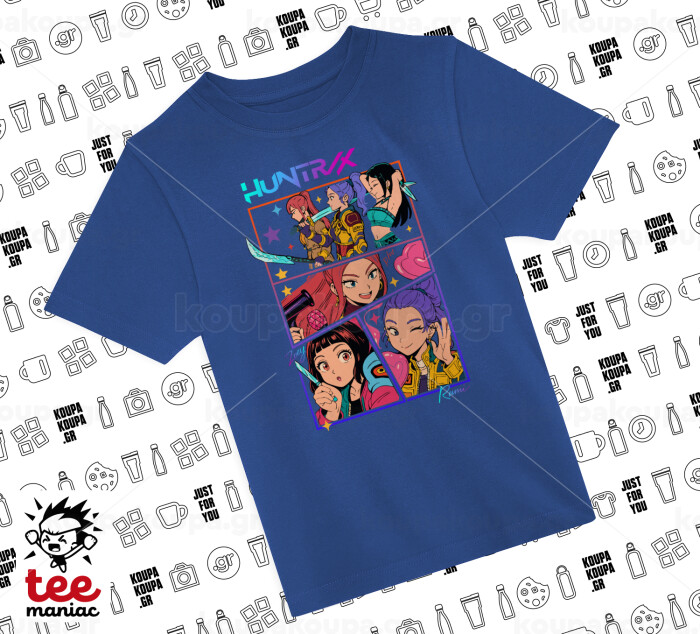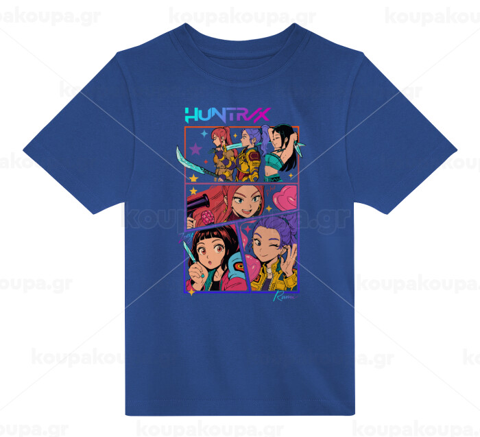 Huntrix Kpop Girls, Παιδικό T-Shirt ΜΠΛΕ από 100% βαμβάκι, για κάθε μέρα. Vegan & OEKO-TEX πιστοποιημένο.