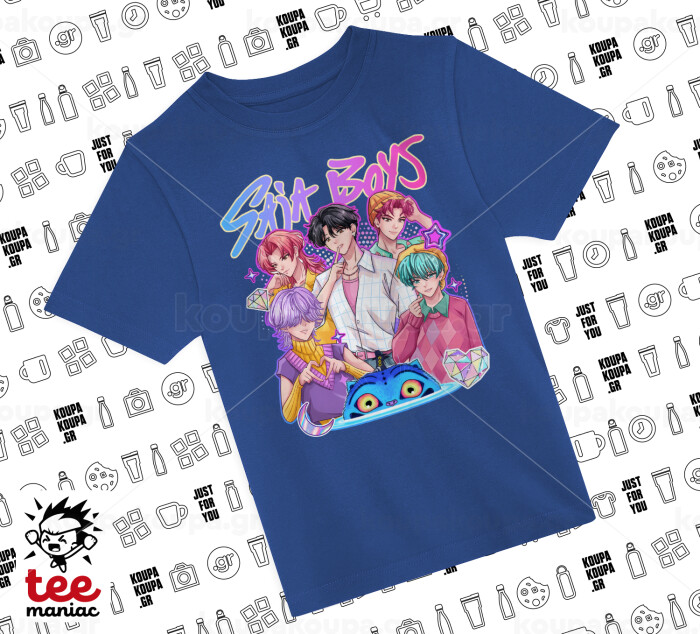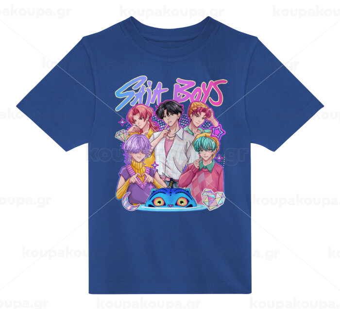 Huntrix Saja Boys, Παιδικό T-Shirt ΜΠΛΕ από 100% βαμβάκι, για κάθε μέρα. Vegan & OEKO-TEX πιστοποιημένο.
