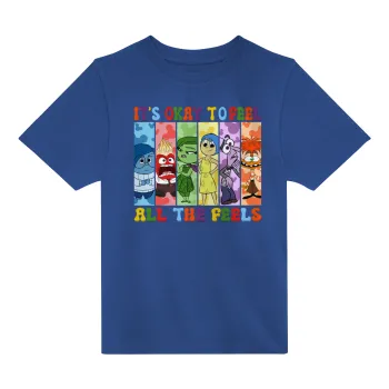 Inside Out It's Okay To Feel All The Feels , Παιδικό T-Shirt ΜΠΛΕ από 100% βαμβάκι, για κάθε μέρα. Vegan & OEKO-TEX πιστοποιημένο.