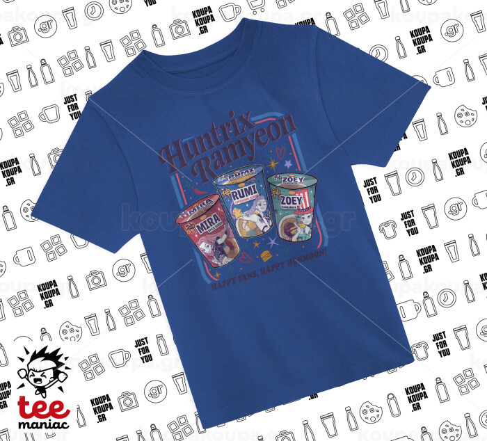 Ramyeon Huntrix, Παιδικό T-Shirt ΜΠΛΕ από 100% βαμβάκι, για κάθε μέρα. Vegan & OEKO-TEX πιστοποιημένο.