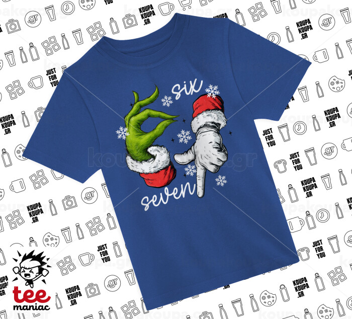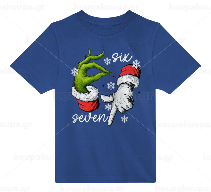 Christmas Meme SIX SEVEN (67), Παιδικό T-Shirt ΜΠΛΕ από 100% βαμβάκι, για κάθε μέρα. Vegan & OEKO-TEX πιστοποιημένο.