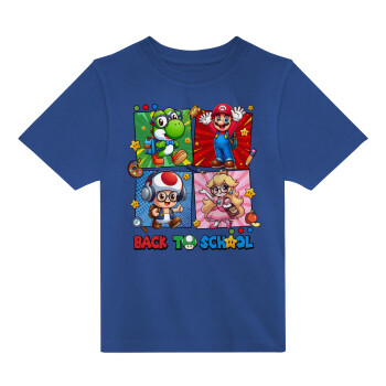 Back to the School Mario & Friends, Παιδικό T-Shirt ΜΠΛΕ από 100% βαμβάκι, για κάθε μέρα. Vegan & OEKO-TEX πιστοποιημένο.