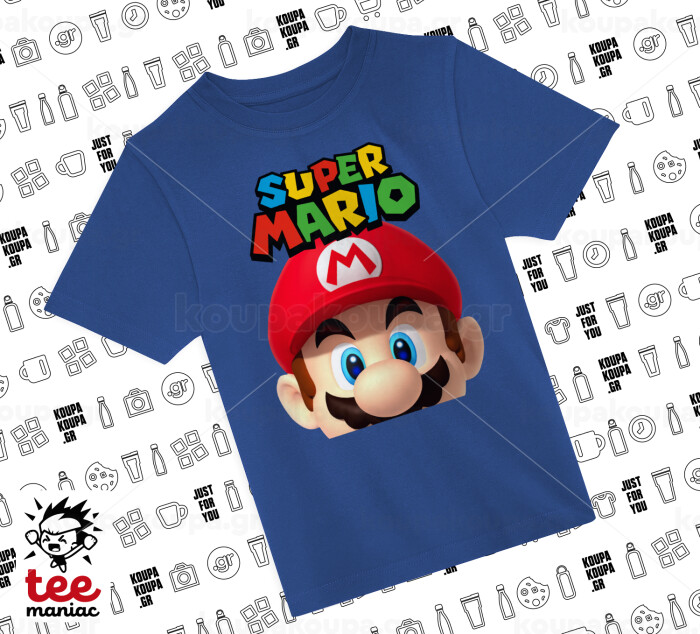 Super mario, Παιδικό T-Shirt ΜΠΛΕ από 100% βαμβάκι, για κάθε μέρα. Vegan & OEKO-TEX πιστοποιημένο.