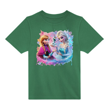 Elsa & Anna Princess, Άνετο παιδικό T-Shirt ΠΡΑΣΙΝΟ από 100% βαμβάκι, για κάθε μέρα. Vegan & OEKO-TEX πιστοποιημένο.