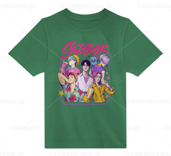 Huntrix Saja Boys, Άνετο παιδικό T-Shirt ΠΡΑΣΙΝΟ από 100% βαμβάκι, για κάθε μέρα. Vegan & OEKO-TEX πιστοποιημένο.