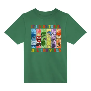 Inside Out It's Okay To Feel All The Feels , Άνετο παιδικό T-Shirt ΠΡΑΣΙΝΟ από 100% βαμβάκι, για κάθε μέρα. Vegan & OEKO-TEX πιστοποιημένο.