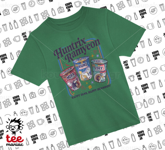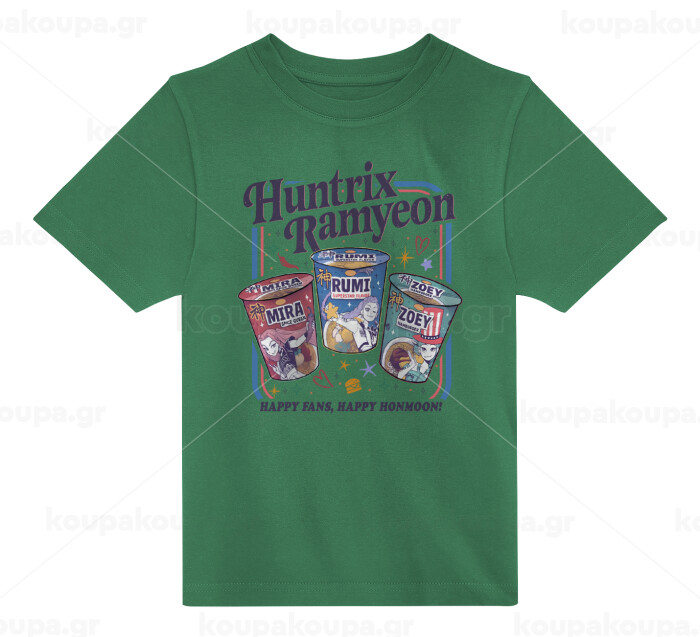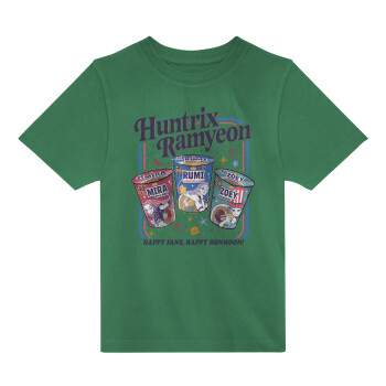 Ramyeon Huntrix, Άνετο παιδικό T-Shirt ΠΡΑΣΙΝΟ από 100% βαμβάκι, για κάθε μέρα. Vegan & OEKO-TEX πιστοποιημένο.