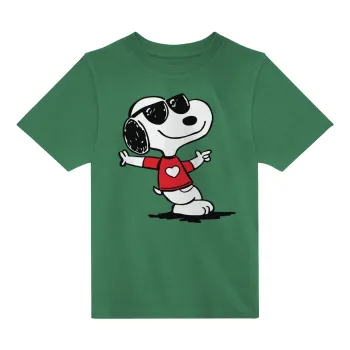 Snoopy καρδούλα, Άνετο παιδικό T-Shirt ΠΡΑΣΙΝΟ από 100% βαμβάκι, για κάθε μέρα. Vegan & OEKO-TEX πιστοποιημένο.
