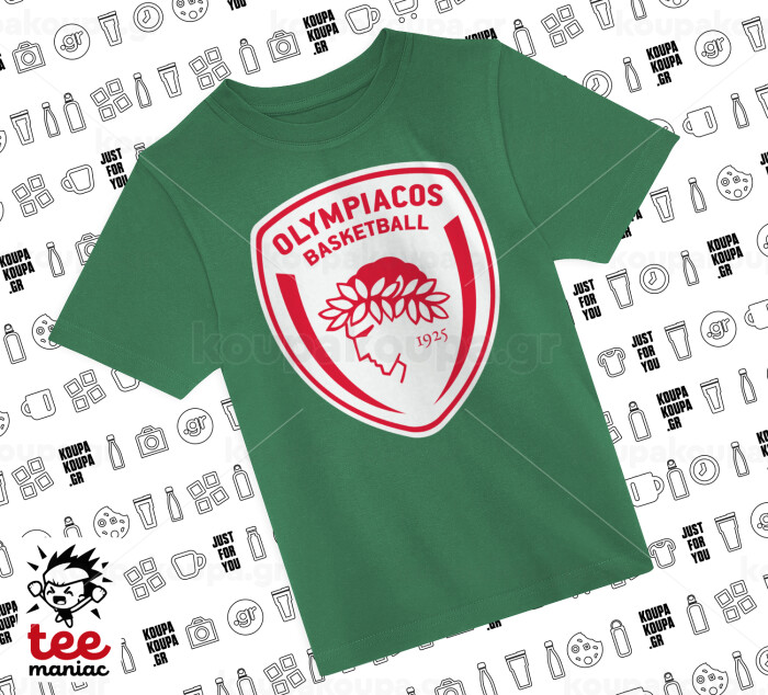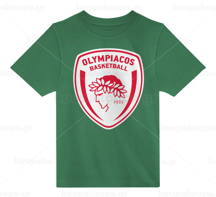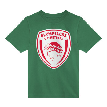 Olympiacos B.C., Άνετο παιδικό T-Shirt ΠΡΑΣΙΝΟ από 100% βαμβάκι, για κάθε μέρα. Vegan & OEKO-TEX πιστοποιημένο.