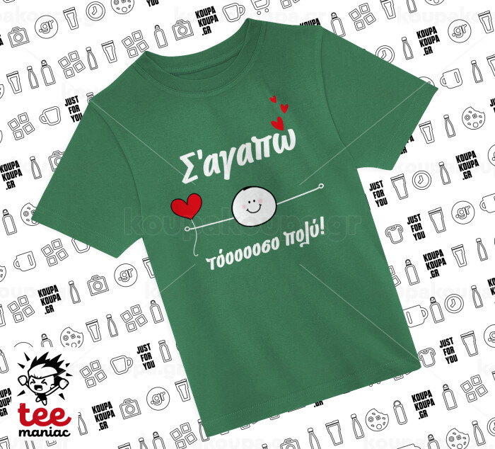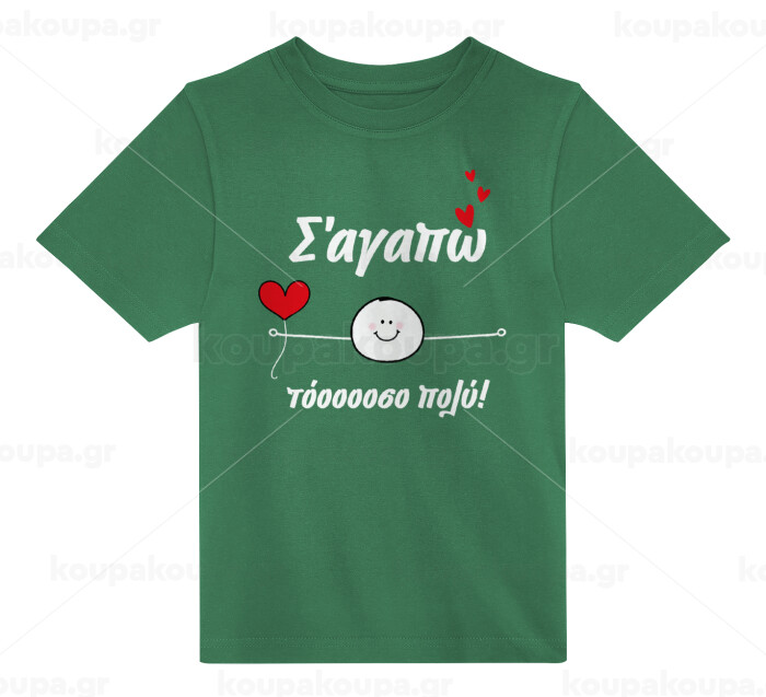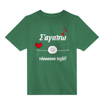 Σ΄αγαπώ τόοοοσο πολύ (Αγόρι)!!!, Άνετο παιδικό T-Shirt ΠΡΑΣΙΝΟ από 100% βαμβάκι, για κάθε μέρα. Vegan & OEKO-TEX πιστοποιημένο.