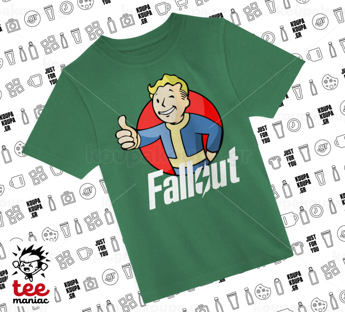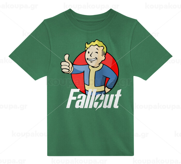 Fallout Vault Boy, Άνετο παιδικό T-Shirt ΠΡΑΣΙΝΟ από 100% βαμβάκι, για κάθε μέρα. Vegan & OEKO-TEX πιστοποιημένο.