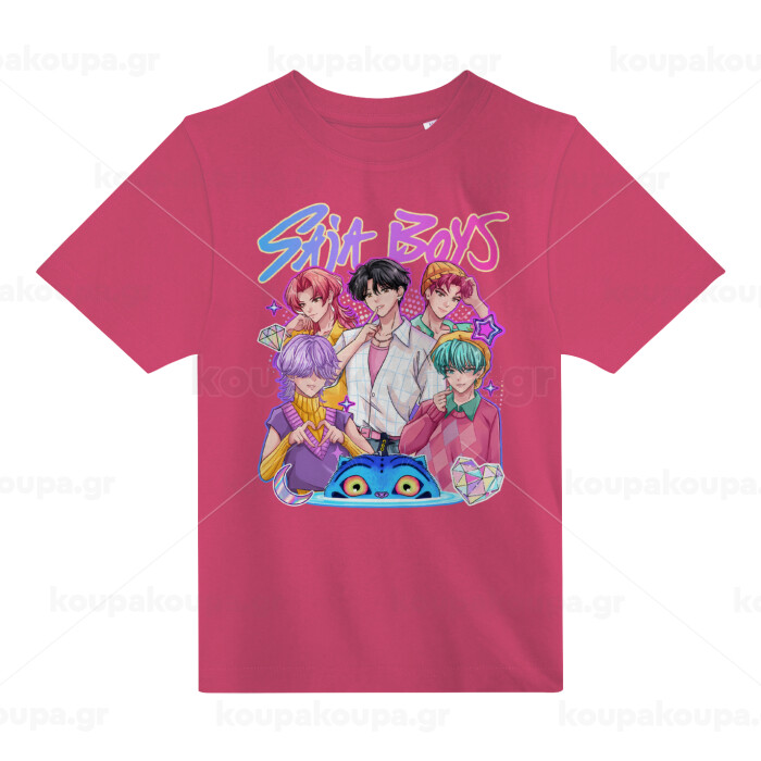 Huntrix Saja Boys, PINK childrens T-Shirt made of 100% cotton, for every day. Vegan & OEKO-TEX certified.