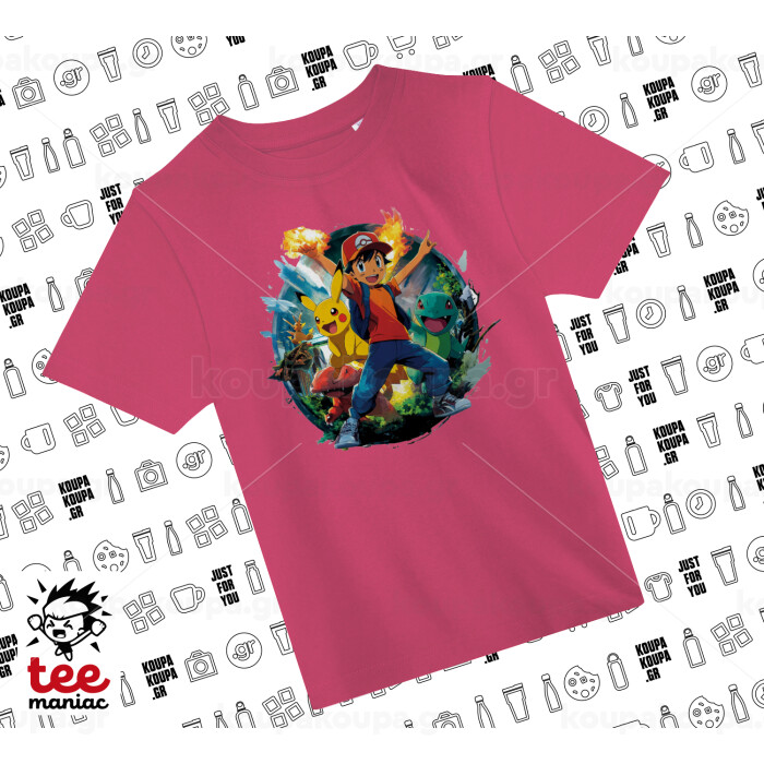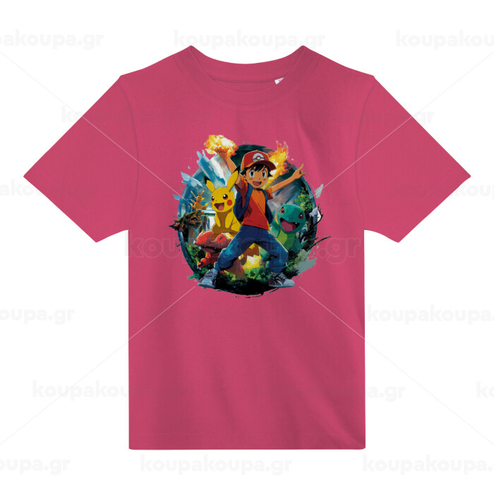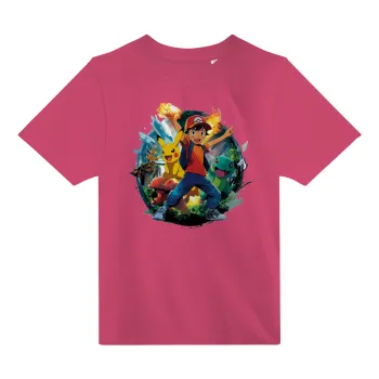 Ash Ketchum & Pikachu, PINK childrens T-Shirt made of 100% cotton, for every day. Vegan & OEKO-TEX certified.