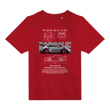 Porsche, Άνετο παιδικό T-Shirt ΚΟΚΚΙΝΟ από 100% βαμβάκι, για κάθε μέρα. Vegan & OEKO-TEX πιστοποιημένο.
