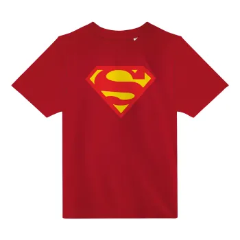 Superman, Άνετο παιδικό T-Shirt ΚΟΚΚΙΝΟ από 100% βαμβάκι, για κάθε μέρα. Vegan & OEKO-TEX πιστοποιημένο.
