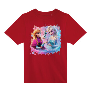 Elsa & Anna Princess, Άνετο παιδικό T-Shirt ΚΟΚΚΙΝΟ από 100% βαμβάκι, για κάθε μέρα. Vegan & OEKO-TEX πιστοποιημένο.